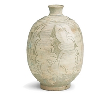 분청사기박지모란문편병 粉靑沙器牡丹文扁甁