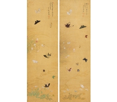 비단에 수묵담채