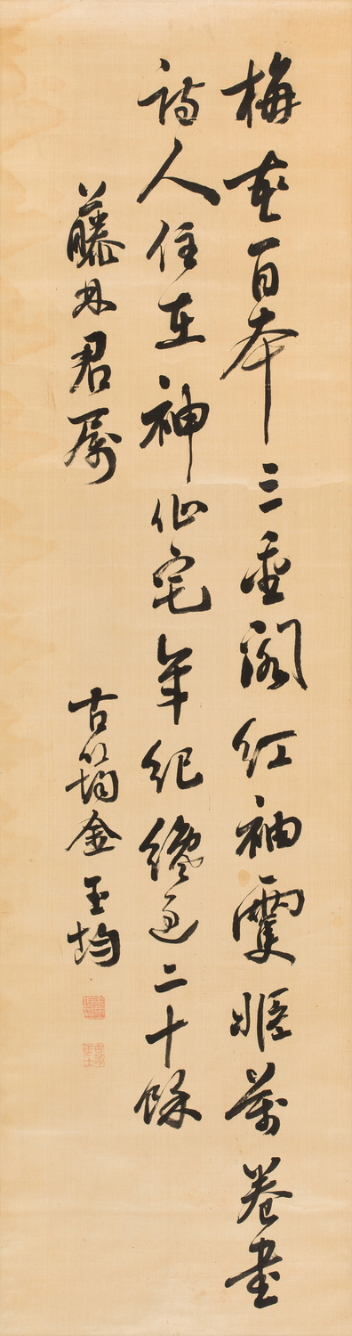 梅花百本三重閣 紅袖䨥姬數巻書 詩人住在神仙宅 年紀纔過二十餘 매화 백 그루가 있는 삼층 누각, 붉은 소매의 두 미인과 몇 권의 책. 시인은 신선의 집 같은 곳에 살고 있으니, 나이는 겨우 스물을 조금 넘겼을 뿐이네.