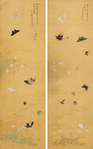 비단에 수묵채색