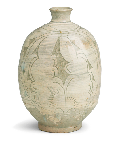 분청사기박지모란문편병 粉靑沙器牡丹文扁甁