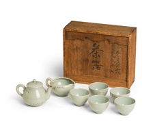 청자음각모란문동화찻잔·주자 靑磁陰刻牡丹文銅畵茶盞·注子 세트