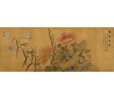 비단에 수묵담채
