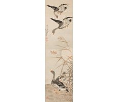 비단에 수묵담채